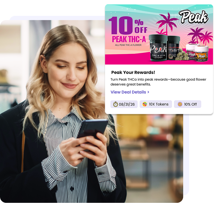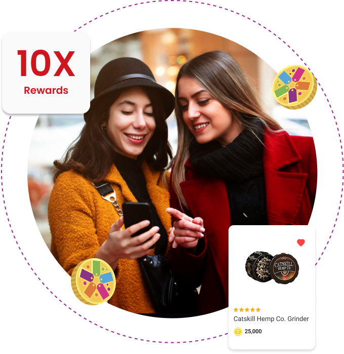 Shoppers instantly earn tokens with every in-store or online purchase. Bonus? Set special campaigns for extra points when they buy premium CBD items or refer friends!