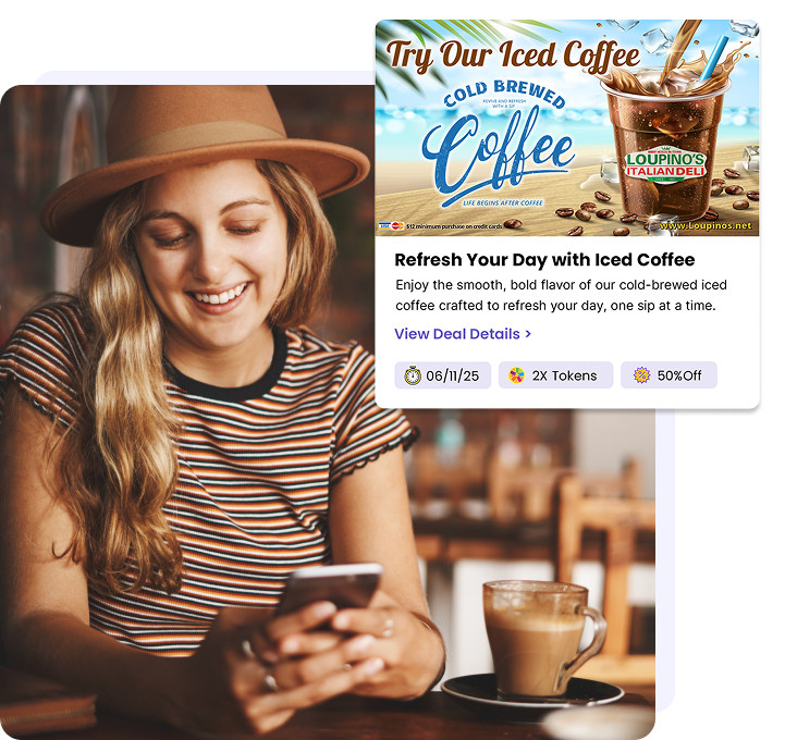 Loyal-n-Save lets your café reward customers every time they visit or make a purchase. Guests earn tokens redeemable for digital coupons, freebies, or Swag Shop items, all managed via an easy-to-use coffee shop loyalty reward app.