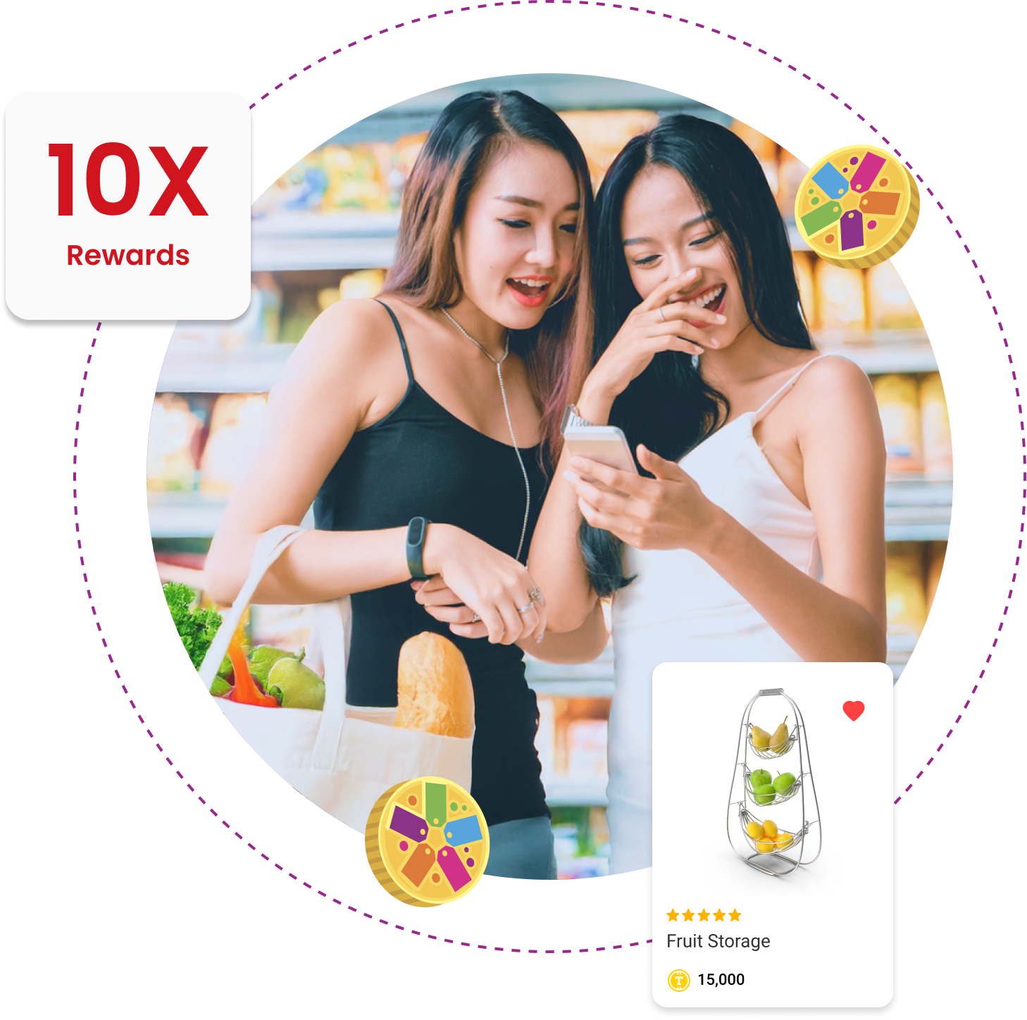 They can redeem points for cash discounts, VIP coupons, exclusive deals, or even grab merch from your grocery rewards swag shop!